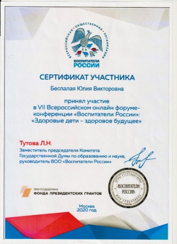 Участие в VII Всероссийском онлайн форуме-конференции "Воспитатели России": "Здоровые дети - здоровое будущее" |