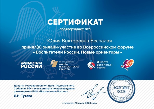 Онлайн-участие во Всероссийском форуме "Воспитатели России. Новые ориентиры"