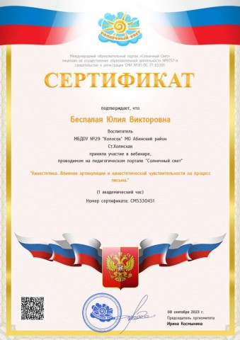 Вебинар "Кинестетика. Влияние артикуляции и кинестетической чувствительности на процесс письма" |