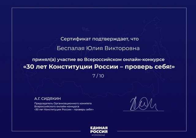 Всероссийский онлайн-конкурс "30 лет Конституции России - проверь себя!" |